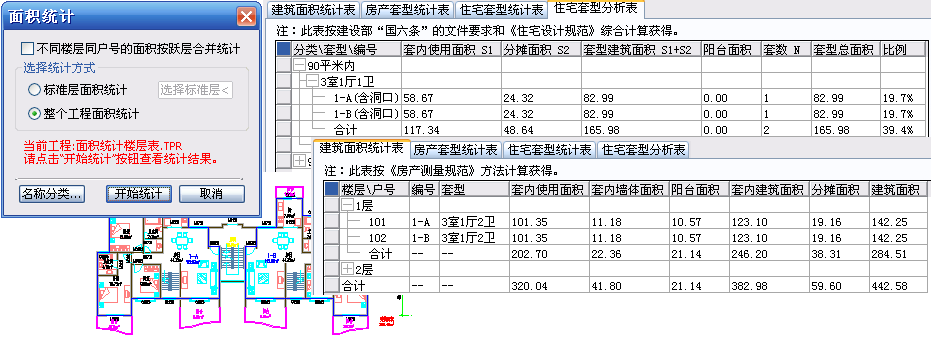 天正建筑提供了各種面積計算命令,可計算房間使用面積、建筑面積、陽臺面積等等,可以按《房產(chǎn)測量規(guī)范》和《住宅設(shè)計規(guī)范》以及建設(shè)部限制大戶型比例的有關(guān)文件,統(tǒng)計住宅的各項面積指標(biāo),分別用于房產(chǎn)部門的面積統(tǒng)計和設(shè)計審查報批。
