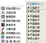 執(zhí)行天正建筑TS軟件命令與執(zhí)行AutoCAD命令一樣,可以從菜單中選擇要運行的命令,并在執(zhí)行過程中根據(jù)命令提示行的提示輸入數(shù)據(jù)。單擊屏幕根菜單中的一項,可以將該項菜單展開;在展開的子菜單位置單擊鼠標右鍵可以收攏返回根菜單。在根菜單某項上擊右鍵,可以彈出該項子菜單。