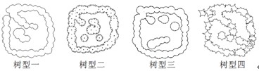 【畫成片樹】:本命令用于平面綠化設計,繪制的樹木如下圖: